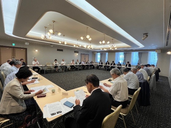 会では、副教育長や市町教育長会連合会長などのご挨拶の後、県教育委員会から欠員数や離職者数など教員・講師不足の現状や人材確保のための施策や研修などについて、丁寧に説明をいただきました。その後、教員採用や保険・支援の内容などについて、多くの質疑応答が行われ、意見交換を行いました。