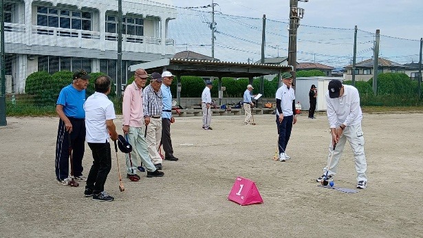 前日の雨で心配もしましたが、当日は爽やかな秋晴れのもと、第28回グラウンド・ゴルフ大会を開催することができました。参加チームは20チームで、応援者も含めて総勢102名の先生方に参加していただきました。