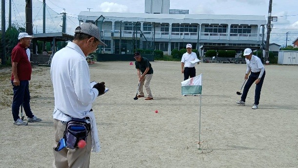 A・Bの2コートに分かれ、各8ホールを2回競技し、上位4名の合計で勝敗を決めました。日ごろの練習の成果をいかんなく発揮されガッツポーズの先生もいれば、思い通りにいかないで「あちゃー」の嘆き声の先生も。いずれにしても、あちらこちらからの歓声や相手を称える拍手も聞こえ、大いに盛り上がりました。ちなみに、ホールインワンは26名で、そのうち2名は2回のホールインワン達成者でした。