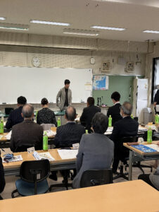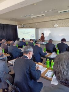 最初に、小城高等学校の高尾和範校長先生から挨拶があり、「小城高等学校の学区拡大に伴い、地域連携が図りやすい環境を生かした特色ある活動を実践しており、生徒の居場所づくりの取組もその一環である。」など小城高等学校の概要について話がありました。次に、教育支援部主任 吉永三貴子先生から、「不登校等の生徒の居場所づくり対策の取組について~多様性を認め合う集団づくりの観点から~」の説明がありました。
